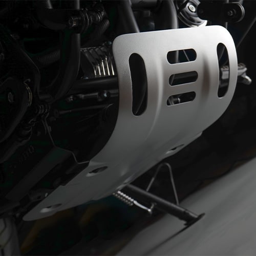 Sabot moteur en aluminium estampée avec traitement d’anodisation de haute qualité. Protège efficacement le bas du moteur contre les dommages causés par les chocs.